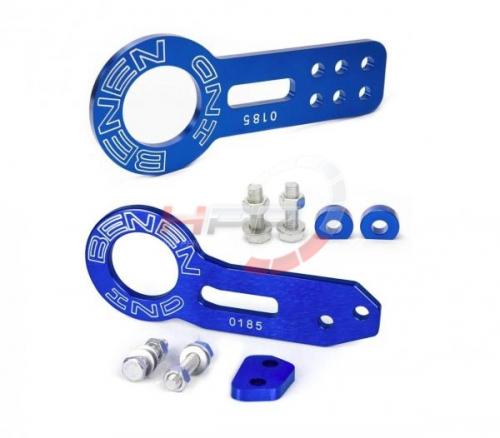 Přední a zadní odtahový hák (odtahové oko) Benen style - modrý. Univerzální. Jedná se o kompletní kit předního a zadního háku.