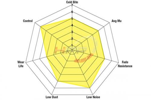 - Střední tvrdost směsi poskytuje dobrou odezvu na brzdový pedál a stále zachovává komfort při brždění.