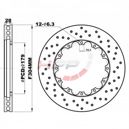 Přední brzdové kotouče D2 Racing 304x28mm - děrované - pe...