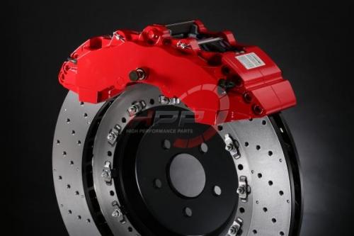Kompletní brzdový kit od firmy D2 Racing určený pro přední nápravu s 8-pístkovými brzdiči a velikostí kotoučů 421x36mm. Brzdové kity zvyšují razantně brzdný účinek, eliminují vadnutí brzd a disponují lepším chlazením kotoučů a lepším rozptýlením tepla. Kombinace větších brzdičů a větších pístků u brzdičů ve spojení se zvětšeným průměrem kotouče zajišťuje kratší brzdnou dráhu a při opakovaném prudkém brždění eliminuje efekt vadnutí brzd. Vozidlu také dodává celkově atraktivnější a sportovnější vzhled. Všechny brzdiče jsou vyrobeny z kvalitní letecké slitiny hliníku vyznačující se velmi lehkou hmotností, velmi vysokou pevností a barevně mohou být přizpůsobeny dle přání zákazníka včetně lakování speciálními barvami s vysoce lesklými a odolnými povrchy. Kotouče je možné zvolit v děrovaném nebo drážkovaném provedení dle požadovaného účelu.