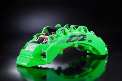 Kompletní brzdový kit od firmy D2 Racing určený pro přední nápravu s 12-pístkovými brzdiči a velikostí kotoučů 444x36mm. Brzdové kity zvyšují razantně brzdný účinek, eliminují vadnutí brzd a disponují lepším chlazením kotoučů a lepším rozptýlením tepla. Kombinace větších brzdičů a větších pístků u brzdičů ve spojení se zvětšeným průměrem kotouče zajišťuje kratší brzdnou dráhu a při opakovaném prudkém brždění eliminuje efekt vadnutí brzd. Vozidlu také dodává celkově atraktivnější a sportovnější vzhled. Všechny brzdiče jsou vyrobeny z kvalitní letecké slitiny hliníku vyznačující se velmi lehkou hmotností, velmi vysokou pevností a barevně mohou být přizpůsobeny dle přání zákazníka včetně lakování speciálními barvami s vysoce lesklými a odolnými povrchy. Kotouče je možné zvolit v děrovaném nebo drážkovaném provedení dle požadovaného účelu.