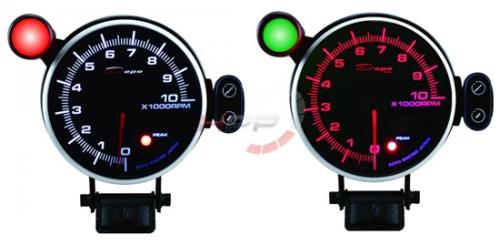 Budík otáčkoměr nejvyšší série Peak firmy Depo Racing. Budíky mají programovatelné varování (programmable warning) a také funkci vyvolávání (peak recall). Budíky jsou podsvícené bílou a červenou LED diodou. Lze tedy vybrat vhodnou kombinaci. Jsou výborně viditelné i při ostrém slunci. Montážní hloubka je 23mm. Balení obsahuje shift light, kabeláž, ovládací panel, držák na palubovku a montážní materiál.