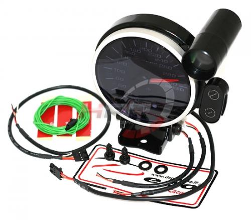 Budík rychloměr nejvyšší série Peak firmy Depo Racing. Budíky mají programovatelné varování (programmable warning) a také funkci vyvolávání (peak recall). Budíky jsou podsvícené bílou a červenou LED diodou. Lze tedy vybrat vhodnou kombinaci. Jsou výborně viditelné i při ostrém slunci. Montážní hloubka je 23mm. Balení obsahuje indikátor max. rychlosti, kabeláž, ovládací panel, držák na palubovku a montážní materiál.