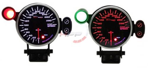 Budík rychloměr nejvyšší série Peak firmy Depo Racing. Budíky mají programovatelné varování (programmable warning) a také funkci vyvolávání (peak recall). Budíky jsou podsvícené bílou a červenou LED diodou. Lze tedy vybrat vhodnou kombinaci. Jsou výborně viditelné i při ostrém slunci. Montážní hloubka je 23mm. Balení obsahuje indikátor max. rychlosti, kabeláž, ovládací panel, držák na palubovku a montážní materiál.