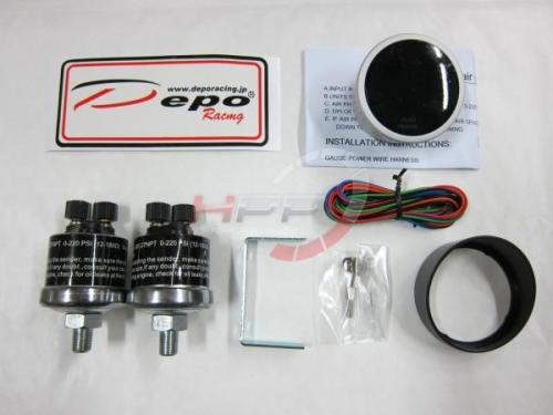 Přídavný budík Depo Racing Digital Blue LED - duální tlak nasávaného vzduchu.
