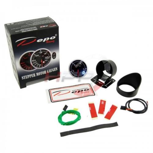Budík série Dual View firmy Depo Racing. Budíky jsou podsvícené bílou a červenou LED diodou. Lze tedy vybrat požadovanou barvu. Zobrazují hodnoty jak analogově tak digitálně. Jsou výborně viditelné i při ostrém slunci. Montážní hloubka je 25mm. Balení obsahuje elektronický senzor tlaku, stínítko, držák na palubovku, kabeláž a montážní materiál.
