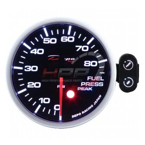 Budík nejvyšší série Peak firmy Depo Racing. Budíky mají programovatelné varování (programmable warning) a také funkci vyvolávání (peak recall). Budíky jsou podsvícené sedmi různými barvami pomocí LED diod (viz. foto). Lze tedy vybrat vhodnou kombinaci. Jsou výborně viditelné i při ostrém slunci. Montážní hloubka je 35mm. Balení obsahuje kabeláž, senzor tlaku, ovládací panel, stínítko, držák na palubovku a montážní materiál.