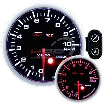 Budík nejvyšší série Peak firmy Depo Racing. Budíky mají programovatelné varování (programmable warning) a také funkci vyvolávání (peak recall). Budíky jsou podsvícené bílou a červenou LED diodou. Lze tedy vybrat vhodnou kombinaci. Jsou výborně viditelné i při ostrém slunci. Montážní hloubka je 35mm. Balení obsahuje kabeláž, ovládací panel, stínítko, držák na palubovku a montážní materiál.