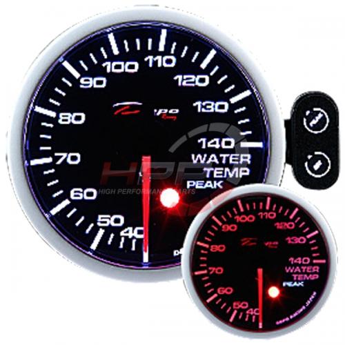 Budík nejvyšší série Peak firmy Depo Racing. Budíky mají programovatelné varování (programmable warning) a také funkci vyvolávání (peak recall). Budíky jsou podsvícené bílou a červenou LED diodou. Lze tedy vybrat vhodnou kombinaci. Jsou výborně viditelné i při ostrém slunci. Montážní hloubka je 35mm. Balení obsahuje kabeláž, senzor teploty, ovládací panel, stínítko, držák na palubovku a montážní materiál.