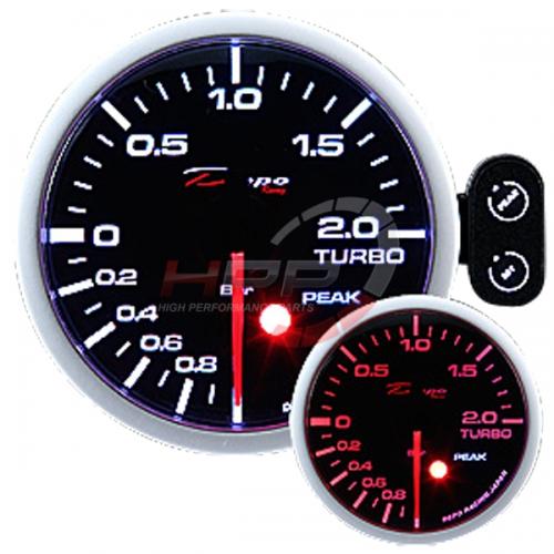 Budík nejvyšší série Peak firmy Depo Racing. Budíky mají programovatelné varování (programmable warning) a také funkci vyvolávání (peak recall). Budíky jsou podsvícené bílou a červenou LED diodou. Lze tedy vybrat vhodnou kombinaci. Jsou výborně viditelné i při ostrém slunci. Montážní hloubka je 35mm. Balení obsahuje kabeláž, senzor tlaku, ovládací panel, stínítko, držák na palubovku a montážní materiál.