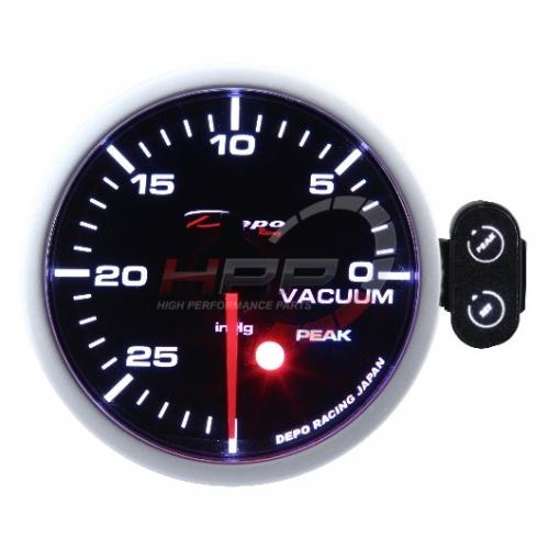 Budík nejvyšší série Peak firmy Depo Racing. Budíky mají programovatelné varování (programmable warning) a také funkci vyvolávání (peak recall). Budíky jsou podsvícené bílou a červenou LED diodou. Lze tedy vybrat vhodnou kombinaci. Jsou výborně viditelné i při ostrém slunci. Montážní hloubka je 35mm. Balení obsahuje kabeláž, senzor tlaku, ovládací panel, stínítko, držák na palubovku a montážní materiál.
