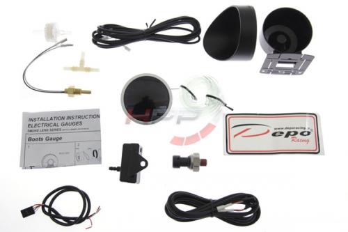 Budík série WA 4in1 firmy Depo Racing. Budíky jsou podsvícené bílou a červenou LED diodou. Lze tedy vybrat vhodnou kombinaci. Jsou výborně viditelné i při ostrém slunci. Montážní hloubka je 20mm. Balení obsahuje senzory, kabeláž, držák na palubní desku a montážní materiál.