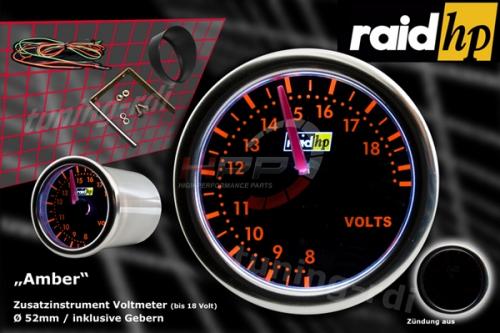 Přídavný budík Raid Night Flight Red - voltmetr