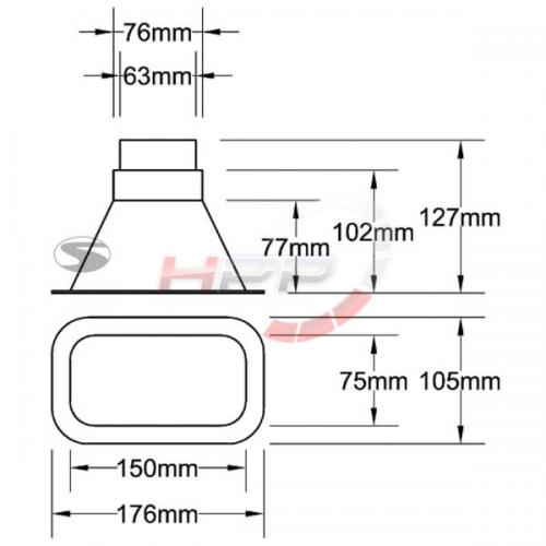Přívod vzduchu Sandtler 176 x 105mm - průměr 63/76mmPřívod vzduchu Sandtler 176 x 105mm - průměr 63/76mm