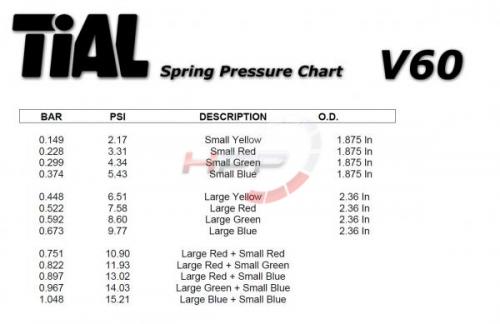 Tial 60mm wastegate: 0,228 bar (3.31 psi).