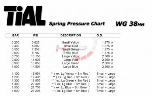 Tial 38mm wastegate: 0,35 bar (5.1 psi).