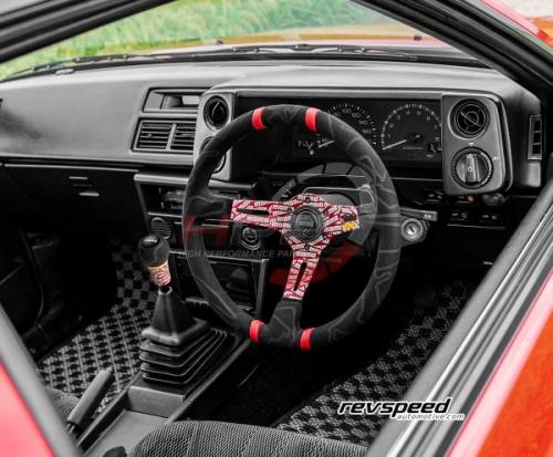 - Sportovní, moderní hlavice řadicí páky od společnosti Momo s krytem z mikrovlákna v designu závodní dráhy.