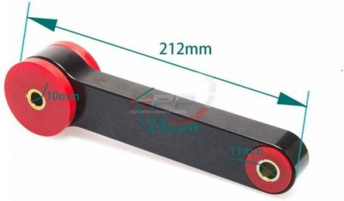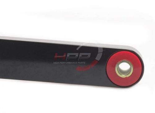 Reakční vzpěra vyrobena na CNC z pevnostní slitiny hliníku, následně černě elexována pro maximální pevnost. Polyuretanové uložení je pevnější než sériové (tvrdost kombinace 75/90 SHA).
