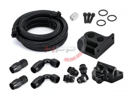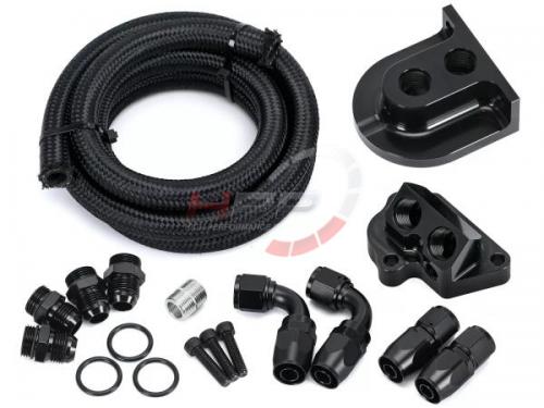 - Relokační kit je určen k přemístění sériového olejového filtru a instalaci přídavného olejového chladiče.