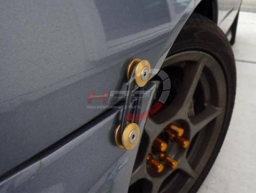 Rychlospojky jsou určené pro závodní účely k rychlému uchycení a případné demontáži částí karosérie jako jsou nárazníky, kapota, kufr atp. Lze použít i uchycení křížovým způsobem, tj. na každou strnu se montuje jedna sada (nutno objednat tedy dvě sady).