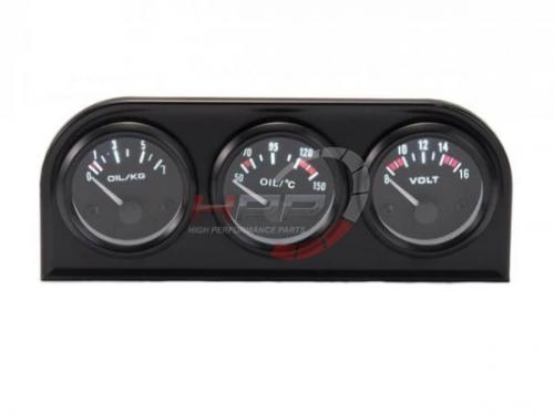 Sada budíků 3in1 s rámečkem ProRacing - tlak oleje, teplota oleje, voltmetr.