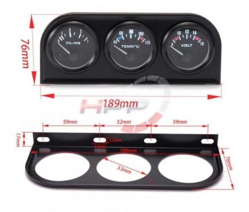 Sada budíků 3in1 s rámečkem ProRacing - tlak oleje, teplota vody, voltmetr.