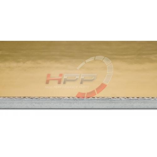 Novinka od firmy Thermo-Tec s vysoce reflexní zlatou vrstvou. Eloxování dělá hliníkovou fólii více pevnou a odolnou. Strana s hliníkovou fólií dokáže snést teplotu až 980°C a redukuje více jak 80% sálavého tepla. Samolepící strana ze skelných vláken odolává průběžným teplotám do 150°C a poskytuje velice silný lepící podklad pro snadné použití. Atraktivní zlatá pohledová část je ideální pro použití na motorové stěny, kapotáže a kamkoliv, kde je nutná tepelná ochrana. Eloxovaný zlatý povrch vypadá skvěle, je neuvěřitleně odolný a chrání povrchy před škodlivými účinky sálavého tepla.