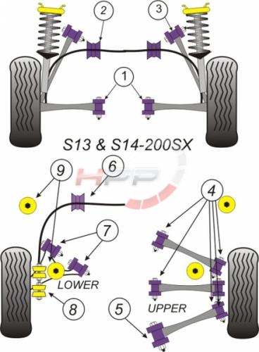 Silentbloky Powerflex Nissan 200SX S13 / S14 Rear Beam Mounting.