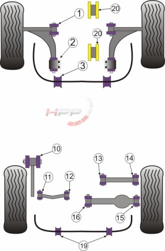 Silentbloky používané k uložení podvozkových částí patří k nejnamáhanějším částem, použitým na automobilu. Podstupují enormní zatížení a nárazy a ve většině případů bez jakékoli údržby. Běžné silentbloky jsou vyráběné z gumových směsí, obsahujících přírodní produkty. Takový materiál podléhá stárnutí, měkne a stává se příliš poddajným. Přestává odolávat silám na něj vynakládaným a tudíž dovoluje pohyb jednotlivých částí podvozku. Výsledkem je obtížně seřiditelná geometrie vozidla, zvýšené opotřebení pneumatik, snížená stabilita při brždění a špatná ovladatelnost vozu. Tvrdé materiály používané dříve k závodním účelům způsobovaly nepříjemný hluk a opotřebení dalších částí vozu. Powerflex však již několik let nabízí fantastickou náhradu! Tou jsou polyuretanové silentbloky. Díky vědecky vyvinuté polyuretanové směsi a jejím technologickým výhodám, jsou silentbloky Powerflex o 30% tvrdší než nové originální gumové silentbloky, zároveň ale absorbují stejné množství hluku. Díky možnosti vyměnit některé silentbloky navíc ušetříte, protože nebudete muset měnit celé rameno nebo jiný díl. Powerflex – to je delší životnost pneumatik, lepší ovladatelnost a větší bezpečnost!