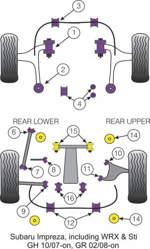 Silentbloky Powerflex Subaru Impreza včetně WRX/STi GH/GR...