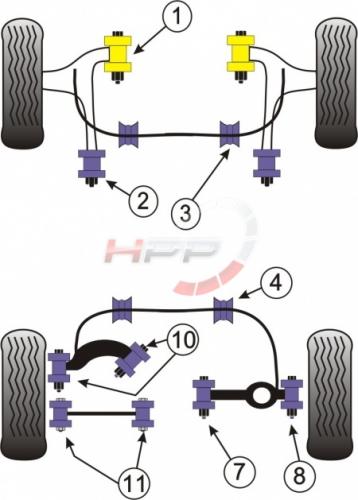 Silentbloky používané k uložení podvozkových částí patří k nejnamáhanějším částem, použitým na automobilu. Podstupují enormní zatížení a nárazy a ve většině případů bez jakékoli údržby. Běžné silentbloky jsou vyráběné z gumových směsí, obsahujících přírodní produkty. Takový materiál podléhá stárnutí, měkne a stává se příliš poddajným. Přestává odolávat silám na něj vynakládaným a tudíž dovoluje pohyb jednotlivých částí podvozku. Výsledkem je obtížně seřiditelná geometrie vozidla, zvýšené opotřebení pneumatik, snížená stabilita při brždění a špatná ovladatelnost vozu. Tvrdé materiály používané dříve k závodním účelům způsobovaly nepříjemný hluk a opotřebení dalších částí vozu. Powerflex však již několik let nabízí fantastickou náhradu! Tou jsou polyuretanové silentbloky. Díky vědecky vyvinuté polyuretanové směsi a jejím technologickým výhodám, jsou silentbloky Powerflex o 30% tvrdší než nové originální gumové silentbloky, zároveň ale absorbují stejné množství hluku. Díky možnosti vyměnit některé silentbloky navíc ušetříte, protože nebudete muset měnit celé rameno nebo jiný díl. Powerflex – to je delší životnost pneumatik, lepší ovladatelnost a větší bezpečnost!