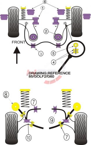 Silentbloky Powerflex VW Golf 2 4WD vč. G60/Rallye/Countr...