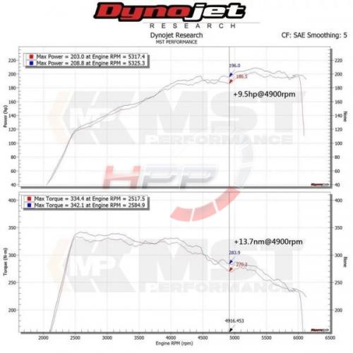 - Tento celek zvyšuje značně průtok nasávaného vzduchu, eliminuje restrikce v sací soustavě, zlepšuje odezvu turbodmychadla a zvyšuje celkový výkonový potenciál +9,5PS @ 4900ot./min. a +13,7Nm @ 4900ot./min.