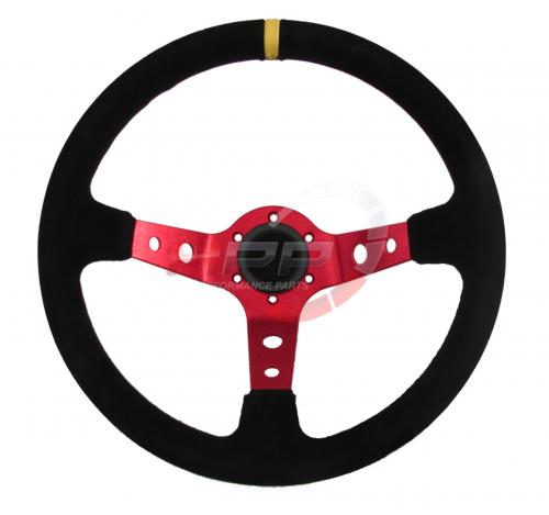 Sportovní volant SW018 - 350mm semiš / 90mm - černý/červený