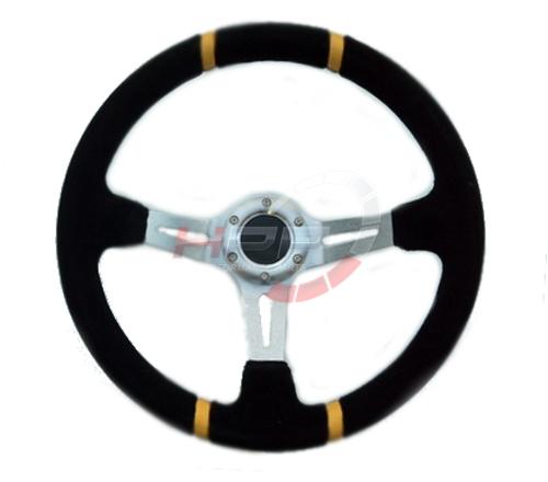 Kvalitní tří ramenný lehký sportovní volant s odsazením určený pro závodní účely. Univerzální rozteč 6x 70mm (pasuje na všechny náby Sparco, OMP, Hub Sport, Sandtler...). Dodáván včetně středového kroužku na klakson.