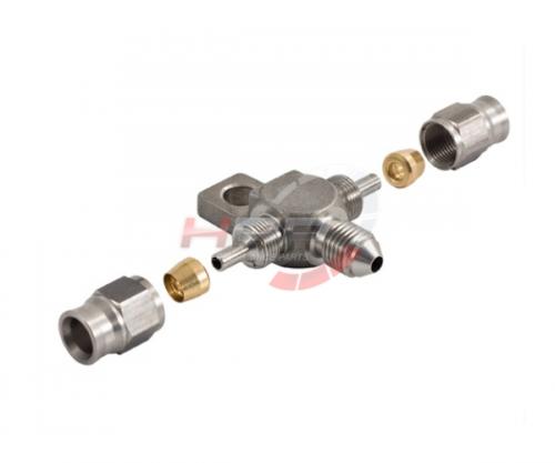 Téčko s výstupy 2x PTFE hadice D-03 (AN3) + 1x samec 1/8"...