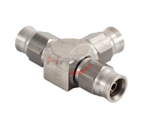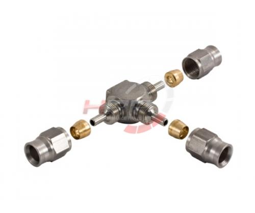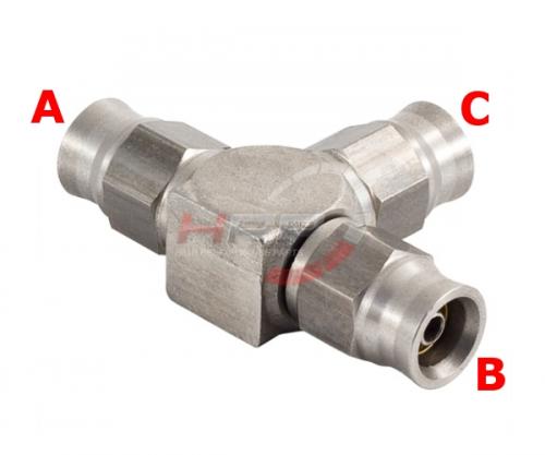Téčko s výstupy 3x PTFE hadice D-03 (AN3) - nerezové