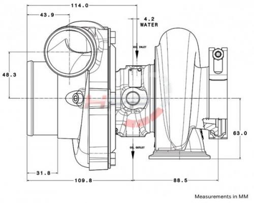 Originální turbo od firmy Garrett řady GT-X nové druhé generace (Gen II). Nové generace turbodmychadel jsou vybaveny následujícími benefity: frézované kované kompresorové kolo ze speciálních lehkých slitin s vysokou pevností, vysoce propustná kompresorová skříň s volitelnou možností montáže snímače otáček, keramické dvojité kuličkové ložisko, inkonelové turbínové kolo odolávající vysokým teplotám, rovnoměrná geometrie snižující pulzní hluk. Turbodmychadla zajišťují perfektní průtok vzduchu, mají mnohem rychlejší nástup a vyšší výkon o 10-20% než klasická řada GT, ale také starší generace GT-X. Ložiska jsou chlazeny vodou a olejem. Absolutní novinou u druhé generace je ta, že některé modely jsou k dispozici s obráceným otáčením směru tzv. reservním.