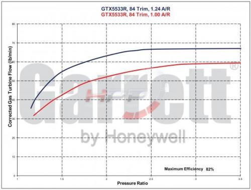 Originální turbo od firmy Garrett řady GT-X s dvojitými kuličkovými ložisky (ball bearing). Nejnovější řada dmychadel od firmy Garrett s přepracovanou kompresorovou částí s antisurge komorou, která eliminuje turbolag (tzv. turbodíru), a novým designem kompresorových lopatek, vyrobených z kovaného hliníku. Turbodmychadla zajišťují perfektní průtok vzduchu, mají mnohem rychlejší nástup a vyšší výkon o 10-20% než klasická řada GT. Ložiska chlazeny vodou a olejem.