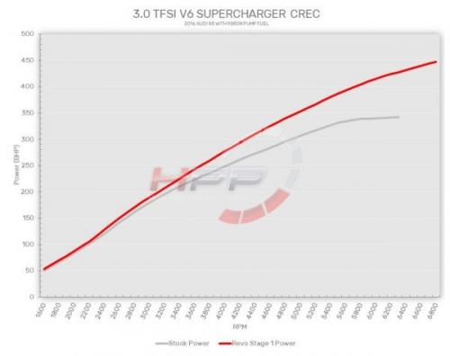- Zážehová jednotka 3.0 V6 TFSI je velmi návyková, a to zejména kvůli svěmu šestiválcovému zvukovému projevu. Turbem přeplňovaný motor dává již v sérii pěkných 333PS a 441Nm. Stage 1 software je navržen tak, aby maximalizoval potenciál tohoto motoru, zlepšil odezvu na plynový pedál a zvýšil výkon i točivý moment v celém spektru otáček.