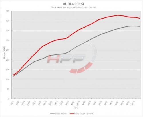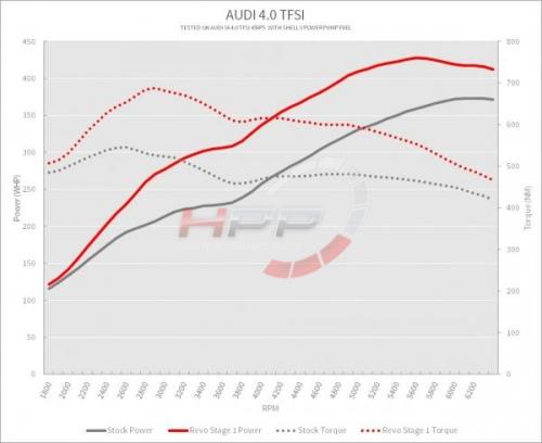 - Zážehová jednotka 4.0 V8 TFSI je velmi návyková, a to nejen pro svůj neobyčejný zvukový projev, ale i z důvodu skvělé dynamiky. Turbem přeplňovaný motor dává již v sérii pěkných 420PS a 550Nm. Stage 1 software je navržen tak, aby maximalizoval potenciál tohoto motoru, zlepšil odezvu na plynový pedál a zvýšil výkon i točivý moment v celém spektru otáček.