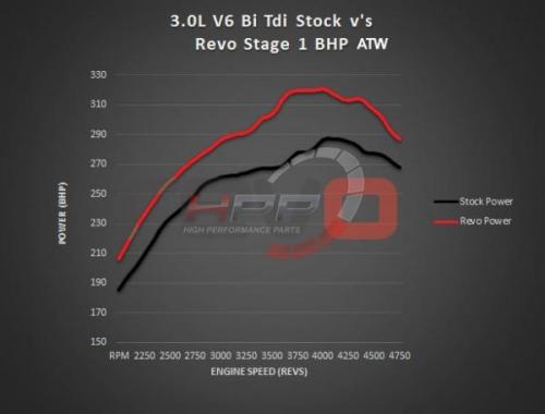 - Naftový motor 3.0 TDi biturbo je motor s hladkým chodem, který dodává velmi pěkný výkon a točivý moment v celém spektru otáček. Software Revo umožňuje těmto motorům dodatečný výkon a širší výkonové pásmo, aniž by ztrácel hladký chod nebo se zhoršila spotřeba. Zvýšení točivého momentu v celém rozsahu otáček poskytuje mnohem větší flexibilitu ve všech převodových stupních. Někteří zákazníci zaznamenali snížení spotřeby až o 10% po této úpravě.