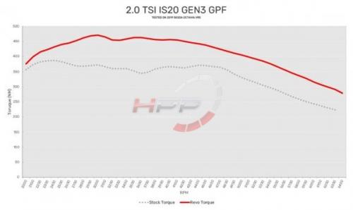- Inovativní motor 2.0TSI umí být vcelku úsporný, ale když je potřeba, dodává velmi pěkný výkon v celém spektru otáček. Software Revo umožňuje těmto motorům dodatečný výkon a širší výkonové pásmo, aniž by ztrácel hladký chod nebo se zhoršila spotřeba. Zvýšení točivého momentu v celém rozsahu otáček poskytuje mnohem větší flexibilitu ve všech převodových stupních. Někteří zákazníci zaznamenali snížení spotřeby až o 10% po této úpravě.