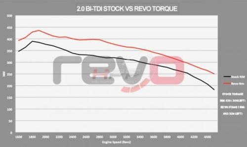 - Naftový motor 2.0 Bi-TDi je velmi úsporný motor s hladkým chodem, který dodává pěkný výkon v nízkých otáčkách. Software Revo umožňuje těmto motorům dodatečný výkon a širší výkonové pásmo, aniž by ztrácel hladký chod nebo se zhoršila spotřeba. Zvýšení točivého momentu v celém rozsahu otáček poskytuje mnohem větší flexibilitu ve všech převodových stupních. Někteří zákazníci zaznamenali snížení spotřeby až o 10% po této úpravě.
