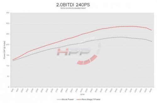 - Naftový motor 2.0 Bi-TDi je velmi úsporný motor s hladkým chodem, který dodává pěkný výkon v nízkých otáčkách. Software Revo umožňuje těmto motorům dodatečný výkon a širší výkonové pásmo, aniž by ztrácel hladký chod nebo se zhoršila spotřeba. Zvýšení točivého momentu v celém rozsahu otáček poskytuje mnohem větší flexibilitu ve všech převodových stupních. Někteří zákazníci zaznamenali snížení spotřeby až o 10% po této úpravě.