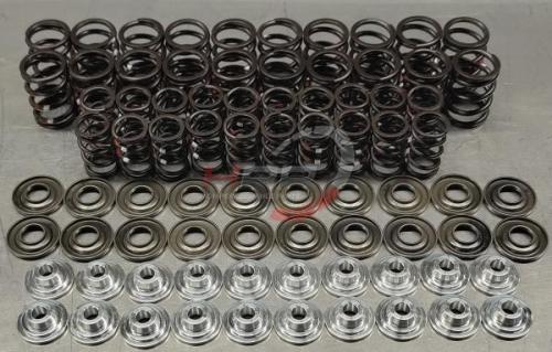 Sady ventilových pružin se skládají z ventilových pružin (jednoduchých nebo dvojitých) a ventilových misek z vysoce pevného hliníku. Možno dodat na přání misky z titanu za příplatek.