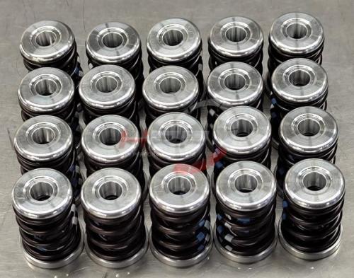 Sady ventilových pružin se skládají z ventilových pružin (jednoduchých nebo dvojitých) a ventilových misek z vysoce pevného hliníku. Možno dodat na přání misky z titanu za příplatek.