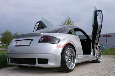 Kompletní systém vertikálního otevírání dveří LSD (Lambo Style Doors) pro Audi TT typ 8N, rok výroby 10/98- (včetně roadster). Originální systém od německého výrobce KW Automotive. Jednoduchá montáž na originální úchyty pantů dveří bez nutnosti zásadních zásahů do karoserie vozu. Kompletní dodávka včetně montážního příslušenství. Bezpečný systém testovaný crash testy. Homologace TÜV.