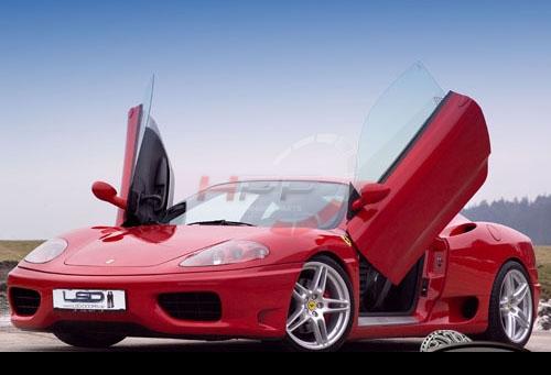 Kompletní systém vertikálního otevírání dveří LSD (Lambo Style Doors) pro Ferrari F360 Modena typ F131, rok výroby 03/99- (Coupe, Spider). Originální systém od německého výrobce KW Automotive. Jednoduchá montáž na originální úchyty pantů dveří bez nutnosti zásadních zásahů do karoserie vozu. Kompletní dodávka včetně montážního příslušenství. Bezpečný systém testovaný crash testy. Homologace TÜV.