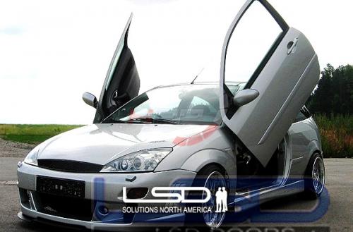 Kompletní systém vertikálního otevírání dveří LSD (Lambo Style Doors) pro Ford Focus typ DNW/DAX/DA1/DB1/DBY, rok výroby 10/98- (5 dveří). Originální systém od německého výrobce KW Automotive. Jednoduchá montáž na originální úchyty pantů dveří bez nutnosti zásadních zásahů do karoserie vozu. Kompletní dodávka včetně montážního příslušenství. Bezpečný systém testovaný crash testy. Homologace TÜV.
